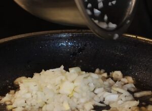 Add minced garlic and cook for about 30 seconds until softened, but without color.