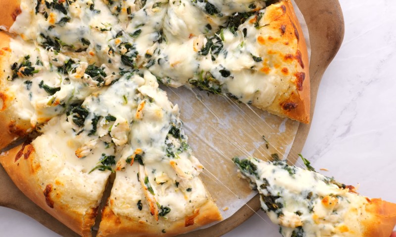 I like adding a handful of spinach under the top cheese layer; it softens perfectly, adding a fresh note without distracting from the creamy sauce. A final crack of black pepper right after the pizza comes out of the oven adds a subtle aroma that ties everything together.